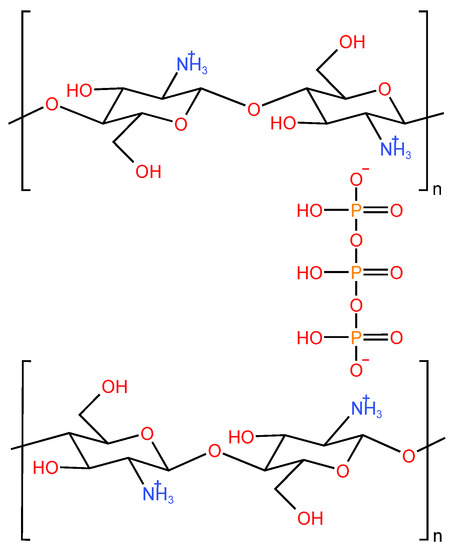 Ionotropic gelation is one of the most widespread methods of CS-based NP synthesis. Since CS is a cationic polysaccharide, its interaction with polyanions such as tripolyphosphate (TPP) results in gelation (Figure 8) [71].