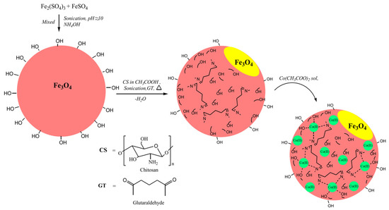 - Singh, H.; Rajput, J.K. Co(II) Anchored Glutaraldehyde Crosslinked Magnetic Chitosan Nanoparticles (MCS) for Synthesis of 2,4,5-Trisubstituted and 1,2,4,5-Tetrasubstituted Imidazoles. Appl. Organometal. Chem. 2018, 32, e3989. [Google Scholar] [CrossRef]