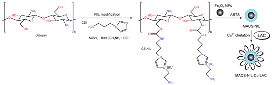 - Qiu, X.; Wang, S.; Miao, S.; Suo, H.; Xu, H.; Hu, Y. Co-Immobilization of Laccase and ABTS onto Amino-Functionalized Ionic Liquid-Modified Magnetic Chitosan Nanoparticles for Pollutants Removal. J. Hazard. Mater. 2021, 401, 123353. [Google Scholar] [CrossRef] [PubMed]