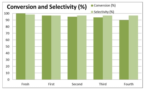 Cycling performing of MK10 in synthesis of 1-benzyl-2-phenyl-benzimidazole using the optimal reaction conditions.