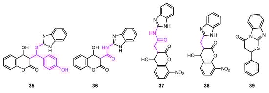 - Arya, C.G.; Ramesh, G.; Yupeng, L.; Janardhan, B. Coumarin–benzimidazole hybrids: A review of developments in medicinal chemistry. Eur. J. Org. Chem. 2022, 227, 113921–113939. [Google Scholar] [CrossRef]