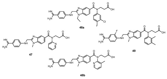 - Yang, H.; Liu, Q.; Gao, X.; Ren, Y.; Gao, Y. Novel dabigatran derivatives with a fluorine atom at the C-2 position of the terminal benzene ring: Design, synthesis and anticoagulant activity evaluation. Eur. J. Med. Chem. 2017, 126, 799–809. [Google Scholar] [CrossRef] [PubMed]