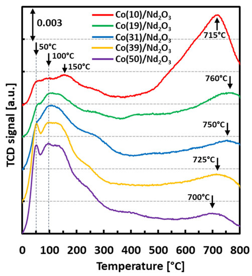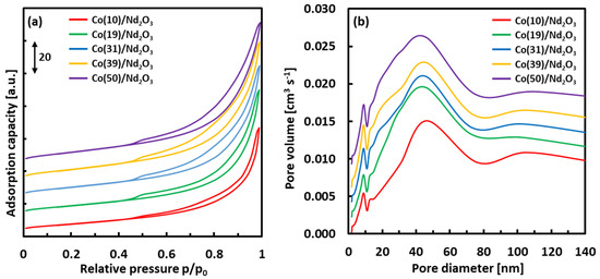 | Parameter | Co(10)/Nd2O3 | Co(19)/Nd2O3 | Co(31)/Nd2O3 | Co(39)/Nd2O3 | Co(50)/Nd2O3 |