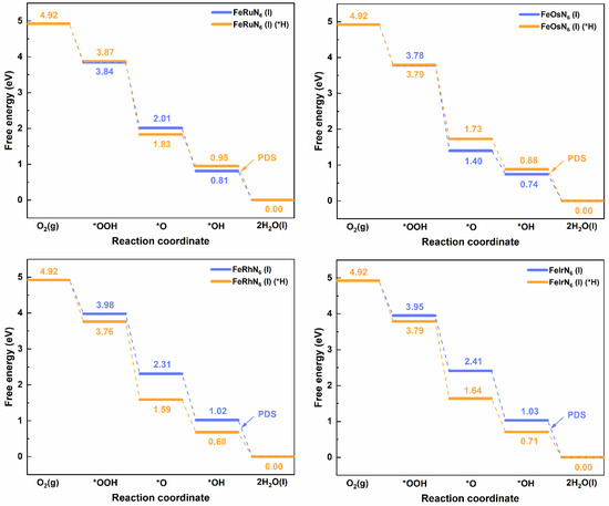 Among them, the * denotes that the ORR species is adsorbed on the catalyst surface. The thermodynamic overpotential η [27,45] is thus determined by