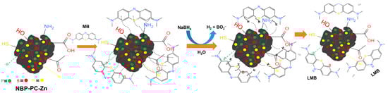 Possible catalytic mechanism of MB reduction over NBP-PC-Zn using NaBH4.
