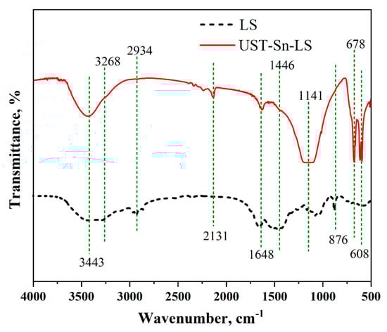 FTIR characterization of raw LS and UST-Sn-LS in the range of 4000–500 cm−1.