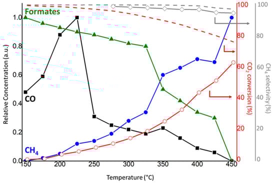 - Karelovic, A.; Ruiz, P. CO2 hydrogenation at low temperature over Rh/γ-Al2O3 catalysts: Effect of the metal particle size on catalytic performances and reaction mechanism. Appl. Catal. B Environ. 2012, 113–114, 237–249. [Google Scholar] [CrossRef]