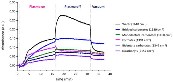 - Parastaev, A.; Kosinov, N.; Hensen, E.J.M. Mechanistic study of catalytic CO2 hydrogenation in a plasma by operando DRIFT spectroscopy. J. Phys. D Appl. Phys. 2021, 54, 264004. [Google Scholar] [CrossRef]