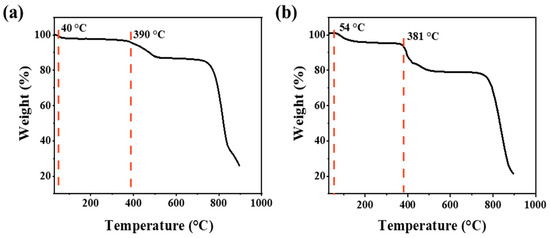 Thermogravimetric (TG, TA Instruments, Newcastle, DE, USA) analysis was conducted with SDT Q600 equipment under an air flow of 100 mL/min from 30 to 900 °C at a heating rate of 10 °C/min.