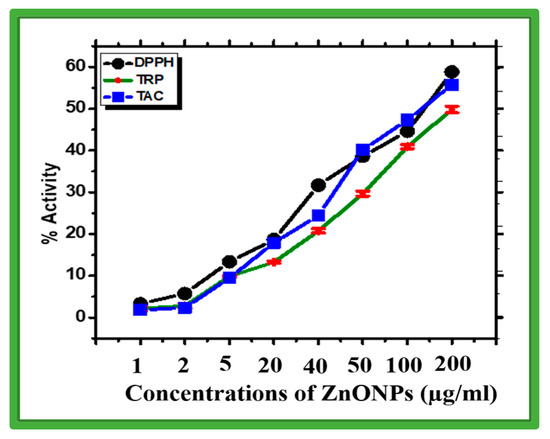 - Iqbal, J.; Abbasi, B.A.; Mahmood, T.; Kanwal, S.; Ahmad, R.; Ashraf, M. Plant-extract mediated green approach for the synthesis of ZnONPs: Characterization and evaluation of cytotoxic, antimicrobial and antioxidant potentials. J. Mol. Struct. 2019, 1189, 315–327. [Google Scholar] [CrossRef]