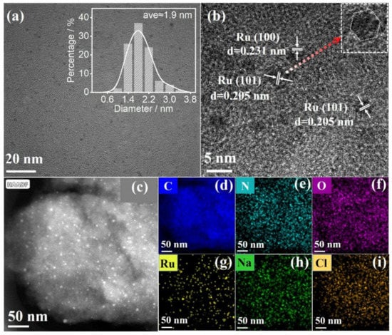 - Xu, C.; Ming, M.; Wang, Q.; Yang, C.; Fan, G.; Wang, Y.; Gao, D.; Bi, J.; Zhang, Y. Facile synthesis of effective Ru nanoparticles on carbon by adsorption-low temperature pyrolysis strategy for hydrogen evolution. J. Mater. Chem. A 2018, 6, 14380–14386. [Google Scholar] [CrossRef]