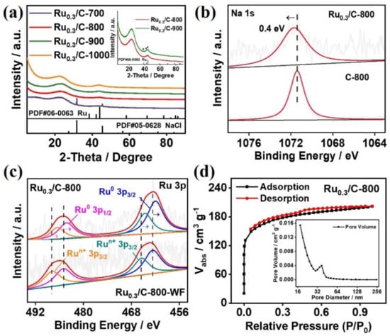 3.2.3. Synthesis of Ru0.3/C−700, Ru0.3/C−900, and Ru0.3/C−1000