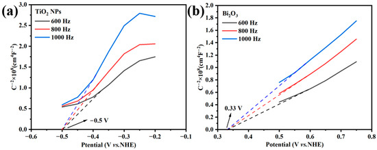 Mott–Schottky plots of (a) TiO2 NPs and (b) Bi2O3.