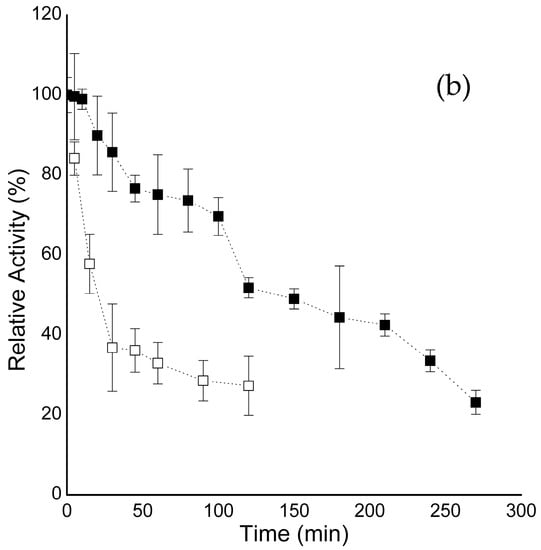 - Rakmai, J.; Cheirsilp, B.; Prasertsan, P. Enhanced Thermal Stability of Cyclodextrin Glycosyltransferase in Alginate-Gelatin Mixed Gel Beads and the Application for β-Cyclodextrin Production. Biocatal. Agric. Biotechnol. 2015, 4, 717–726. [Google Scholar] [CrossRef]