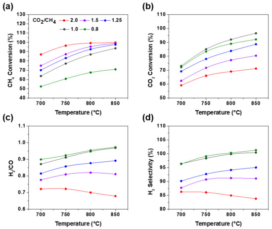 16]. Therefore, it is necessary to evaluate how catalytic activity is affected when the feed composition is changed, as well as which operation parameters are essential for reaction performance. To maximize efficiency, the DRM reaction unit and catalysts must be tailored to the target biogas stream.