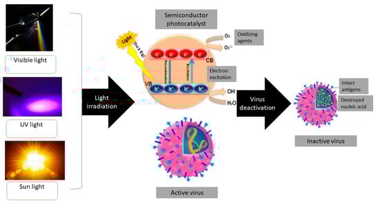 Viral inactivation process of SARS CoV-2 by nano-semiconductor under light irradiation [96].