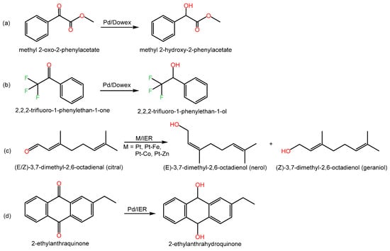 - Osazuwa, O.U.; Abidin, S.Z. The Application of Ion-Exchange Resins in Hydrogenation Reactions. In Applications of Ion Exchange Materials in Chemical and Food Industries; Springer International Publishing: Cham, Switzerland, 2019; pp. 19–33. ISBN 9783030060855. [Google Scholar]