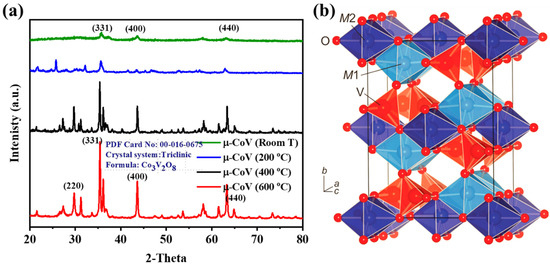- Yang, J.; Wu, M.; Gong, F.; Feng, T.; Chen, C.; Liao, J. Facile and controllable synthesis of solid Co3V2O8 micro-pencils as a highly efficient anode for Li-ion batteries. RSC Adv. 2017, 7, 24418–24424. [Google Scholar] [CrossRef]