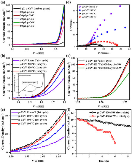 - Hao, M.; Xiao, M.; Qian, L.; Miao, Y. Synthesis of cobalt vanadium nanomaterials for efficient electrocatalysis of oxygen evolution. Front. Chem. Sci. Eng. 2018, 12, 409–416. [Google Scholar] [CrossRef]