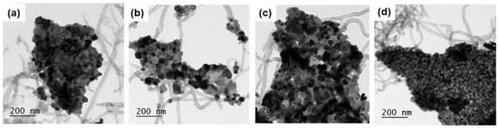 XU et al. [66] prepared Ni/La2O3/γ-Al2O3 and Ni/La2O3/α-Al2O3 catalysts and found that when the size of the Ni particles was less than 15 nm, the carbon deposition was significantly reduced (Figure 6), which made the catalyst have higher catalytic activity and stability. CRNIVEC et al. [67] found that the catalyst surface with metal active particles less than 6 nm has excellent resistance to carbon deposition. LIU et al. [68] found that when nickel particles were less than 5 nm, they had an obvious inhibition effect on carbon deposition.