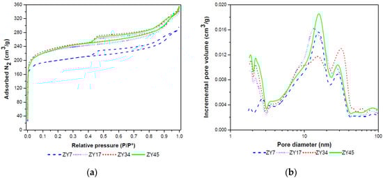 (a) N2 physisorption isotherms, and (b) distribution of pore sizes of the Y-type zeolites.