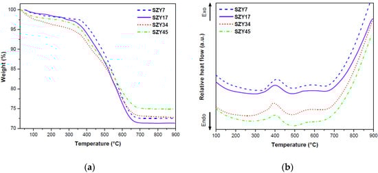 (a) Thermogravimetric analysis and (b) differential thermal analysis of the Y-type zeolites.