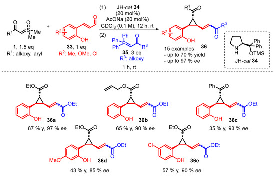 In addition to the Corey–Chaykoysky reaction, formal cyclizations have emerged as powerful methods for obtaining enantioenriched 5- to 6-membered cyclic products using organocatalytic cascade transformations of sulfur ylides [14].