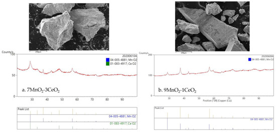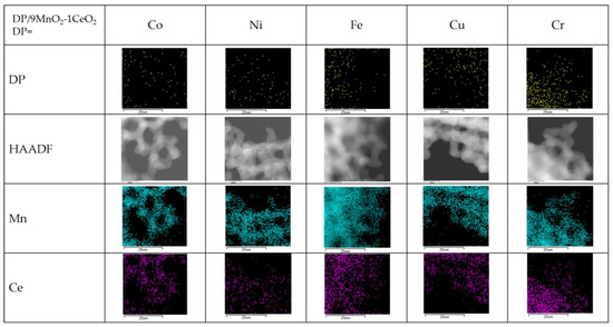 DP/9MnO2–1CeO2 and DP/7MnO2–3CeO2 (DP = Fe, Ni, Cu, or Cr)