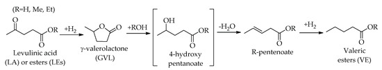 - Yu, Z.; Lu, X.; Xiong, J.; Ji, N. Transformation of Levulinic Acid to Valeric Biofuels: A Review on Heterogeneous Bifunctional Catalytic Systems. ChemSusChem 2019, 12, 3915–3930. [Google Scholar] [CrossRef]