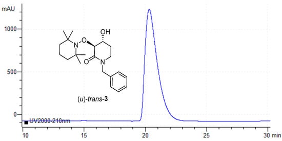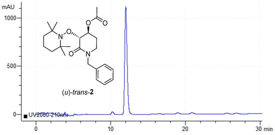 Since remanent was used for a second and third enzymatic resolution with the expectation to obtain a more enantiopure substrate (u)-trans-2, after analysis with Chiral-HPLC, a dominant peak was observed at 10.87 min, ≥97 ee (Figure 6).