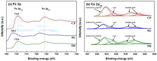 XPS spectra of the fresh FAC catalysts prepared by different methods. (a) Fe 2p; (b) Cu 2p. Adapted from Ref. [11]. Copyright 2015 Elsevier.