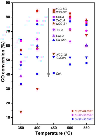 CO conversion of Cu-based catalysts.