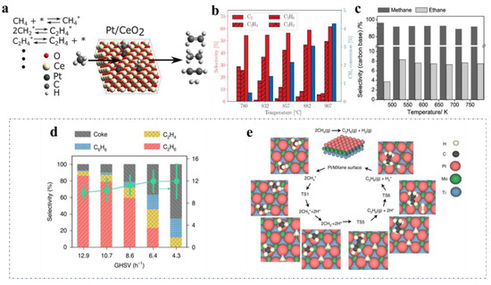 - Xiao, Y.; Varma, A. Highly Selective Nonoxidative Coupling of Methane over Pt-Bi Bimetallic Catalysts. ACS Catal. 2018, 8, 2735–2740. [Google Scholar] [CrossRef]