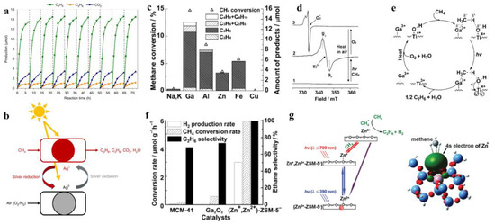 - Li, L.; Li, G.D.; Yan, C.; Mu, X.Y.; Pan, X.L.; Zou, X.X.; Wang, K.X.; Chen, J.S. Efficient sunlight-driven dehydrogenative coupling of methane to ethane over a Zn(+)-modified zeolite. Angew. Chem. Int. Ed. Engl. 2011, 50, 8299–8303. [Google Scholar] [CrossRef]