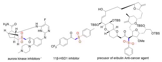 - Reddy, R.; Kumari, A.; Kumar, J. Recent advances in the synthesis and applications of β-keto sulfones: New prospects for the synthesis of β-keto thiosulfones. Org. Biomol. Chem. 2021, 19, 3087–3118. [Google Scholar] [CrossRef]