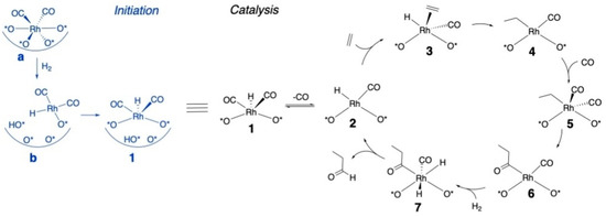The Heck–Breslow mechanism of hydroformylation. O* represents the lattice O. Reproduced with permission from ref. [17] Copyright 2022 John Wiley and Sons.