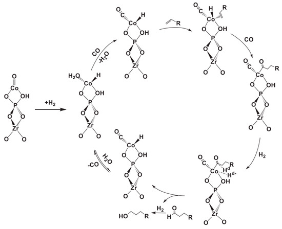 - Gong, H.; Zhao, X.; Qin, Y.; Xu, W.; Wei, X.; Peng, Q.; Ma, Y.; Dai, S.; An, P.; Hou, Z. Hydroformylation of olefins catalyzed by single-atom Co(II) sites in zirconium phosphate. J. Catal. 2022, 408, 245–260. [Google Scholar] [CrossRef]