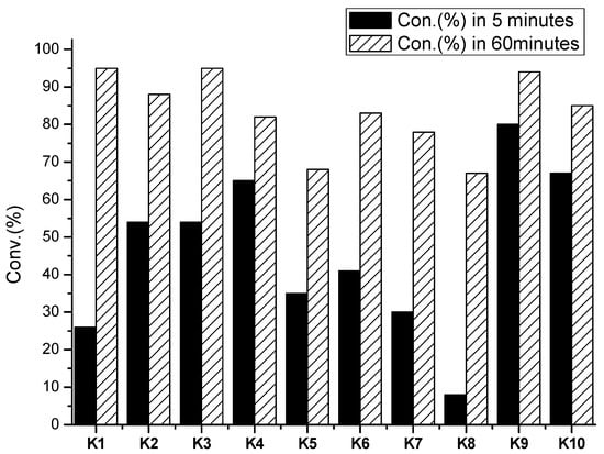 Comparing the conversion by K1–K10 in 5 or 60 min.