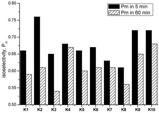 Comparing the isoselectivity of ROP by K1–K10 in 5 or 60 min.