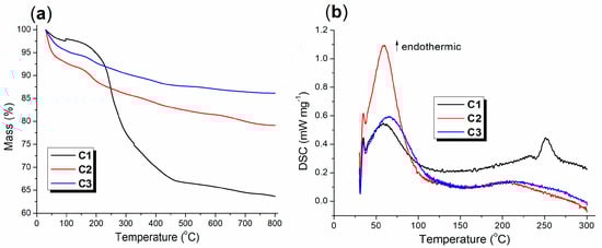 The FT-IR method is a powerful tool for detecting the organic functional groups of synthesized catalysts, and it was employed when the sample was dispersed into KBr pellets on a Bruker Tensor 27 (BRUKER equipment, Bremen, Germany) with wavenumbers of 400–4000 cm−1. Thermogravimetric analysis (TGA) was undertaken on a NETZSH TG 209C (NETZSH Corporation, Bavaria, Germany) with a TASC 414/4 controller under N2 protection, using a heating rate of 10 °C min−1 in the range of 30–800 °C. Differential scanning calorimetry (DSC) was undertaken on a NETZSH DSC 214 (NETZSH Corporation, Bavaria, Germany) with N2 protection, using a heating rate of 10 °C min−1 in the range of 30–300 °C. These two thermal analyses not only showed the catalyst stability during heating but also presented the chemical composition from another point of view. The scanning electron microscopy (SEM) was undertaken on a JEOL JSM-6700F (JEOL Ltd., Tokyo, Japan) at 20.0 kV in the absence of a Au coating. Transmission electron microscopy (TEM) was undertaken on a JEOL JEM-200CX (JEOL Ltd., Tokyo, Japan) at 120 kV.
