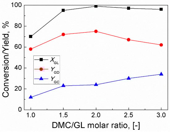 - Wang, H.; Liu, T.; Jiang, C.; Wang, Y.; Ma, J. Synthesis of glycidol and glycerol carbonate from glycerol and dimethyl carbonate using deep-eutectic solvent as a catalyst. Chem. Eng. J. 2022, 442, 136196. [Google Scholar] [CrossRef]