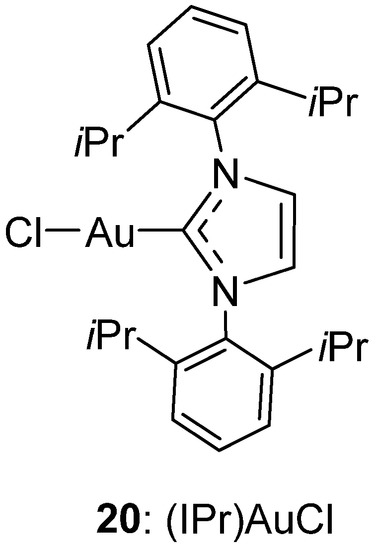 - Marion, N.; Nolan, S.P. N-Heterocyclic Carbenes in Gold Catalysis. Chem. Soc. Rev. 2008, 37, 1776–1782. [Google Scholar] [CrossRef]