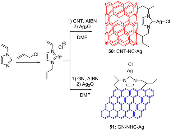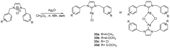 In 2008, Wang and co-workers reported the synthesis of a series of NHC-Ag(I) (1a–d) and polystyrene supported PS-NHC-Ag(I) (2a–d) complexes (Figure 1) [23].