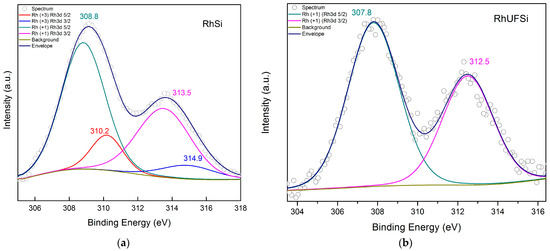 High-resolution Rh3d XPS spectra of (a) Rh-Si and (b) Rh-UFSi.