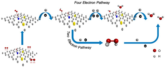 Both methods depend crucially on the oxygen (O2) adsorption mode and the dissociation restriction of the O-O bond on the catalyst’s contact. In contrast, reaction-free energy was commonly used as a descriptor to evaluate the catalytic activity or specificity of novel electrocatalysts due to their rapid development. Two putative ORR processes are presented in the electrochemical system created by Nrskov et al. [54] an additive mechanism that involves a HOO* species and a direct O2 dissociation mechanism in an acid or alkaline electrolyte, which are represented in Figure 4.