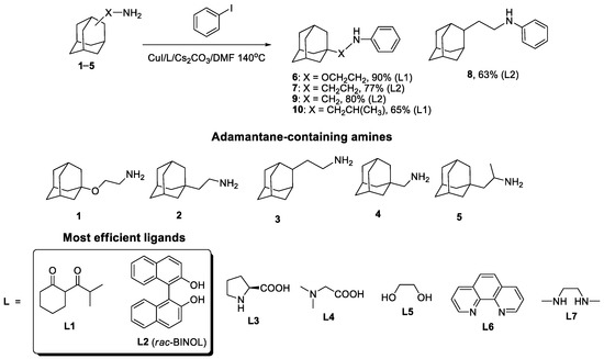 Recent Achievements in the Copper-Catalyzed Arylation of Adamantane-Containing Amines, Di- and Polyamines