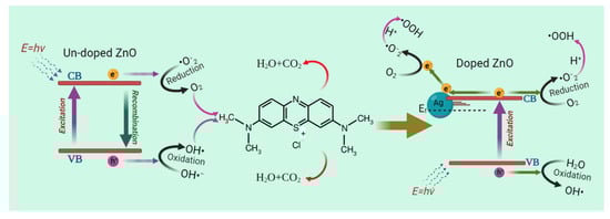 Schematic diagram of the proposed mechanism for the degradation of MB by Ag-doped ZnO nanostructures.