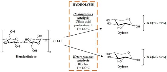 - Ormsby, R.; Kastner, J.R.; Miller, J. Hemicellulose Hydrolysis Using Solid Acid Catalysts Generated from Biochar. Catal. Today 2012, 190, 89–97. [Google Scholar] [CrossRef]