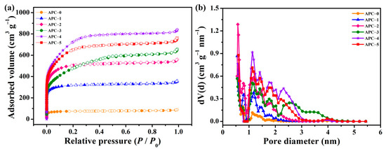 N2 adsorption and desorption isotherms (a) and the pore size distribution profiles (b) of APCs.