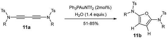 2,5-Diaminofurans 11b were formed by the reaction of water with diynamides 11a catalyzed by Ph3PAuNTf2 [47] (Scheme 11).